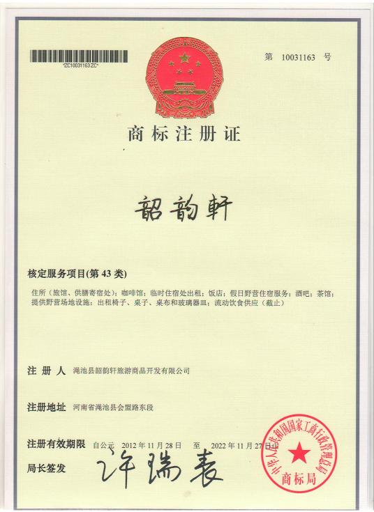 商標(biāo)注冊證--韶韻軒